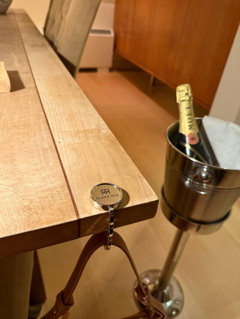 Each Elaira Mae table hook is crafted from solid, premium metal selected for its quality, stability and timeless elegance. The gold and silver finishes are sealed with a refined protective coating that preserves their brilliance and ensures resistance to scratches, fading and daily professional use.